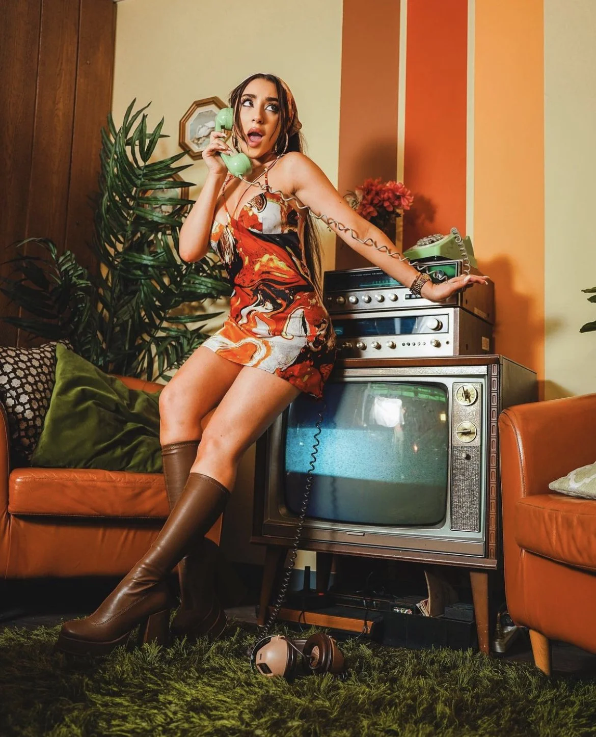 Behind the camera she is a businesswoman and co-founder of Retro Cetra, a retro inspired set design team based out of Los Angeles. Co-owned with her partner Ryan Conferido, together they design and build commissioned sets, installations and handmade home decor.